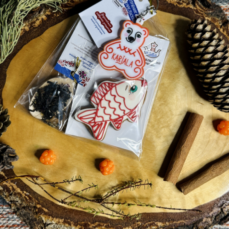 Погрузитесь в уютную атмосферу Карелии с этим уникальным набором! Ароматный традиционный северный пряник козуля, удобная ложечка с порцией карельского ива-чая и соснового сиропа для кружечки напитка, а также оригинальный брелок-сувенир из Карелии. Идеальный подарок и прекрасный повод для душевного чаепития.