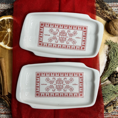 Изысканная фарфоровая селедочница, украшенная аутентичным карельским орнаментом. Метод деколи обеспечивает четкость и долговечность рисунка, сохраняя яркость красок. Это не просто посуда, а изящное дополнение к вашему столу, которое подчеркнет красоту традиционных закусок. Привнесите частичку северного гостеприимства в каждый прием пищи!