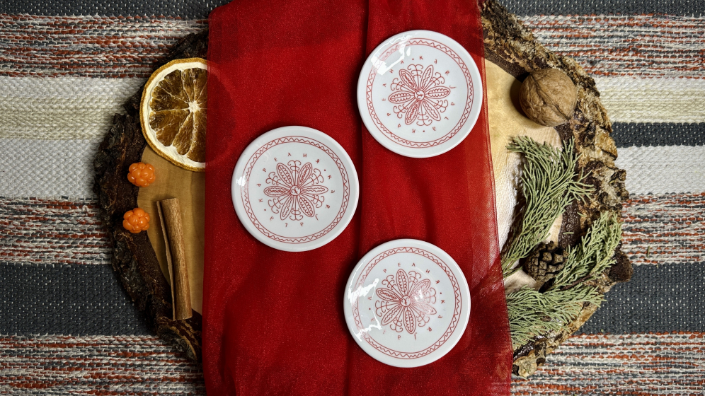 Изысканная фарфоровая плакетка, украшенная аутентичным карельским орнаментом. Метод деколи обеспечивает четкость и долговечность рисунка, сохраняя яркость красок. Это не просто посуда, а изящное дополнение к вашему столу, которое подчеркнет красоту традиционных закусок. Привнесите частичку северного гостеприимства в каждый прием пищи!