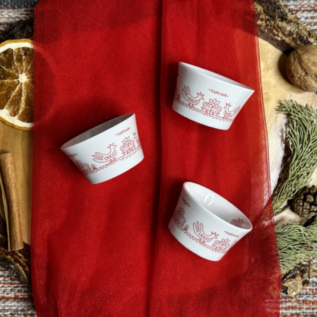 Изысканная фарфоровая солонка, украшенная аутентичным карельским орнаментом. Метод деколи обеспечивает четкость и долговечность рисунка, сохраняя яркость красок. Это не просто посуда, а изящное дополнение к вашему столу, которое подчеркнет красоту традиционных закусок. Привнесите частичку северного гостеприимства в каждый прием пищи!